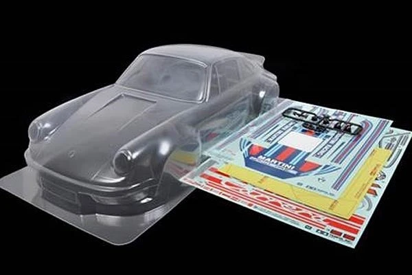 This is a clear polycarbonate body parts set of the Porsche 911 Carrera RSR race car. It is made out of 1mm thick polycarbonate. The set includes masking seals for the windows and a sticker set to replicate the Carrera RSR Team livery.