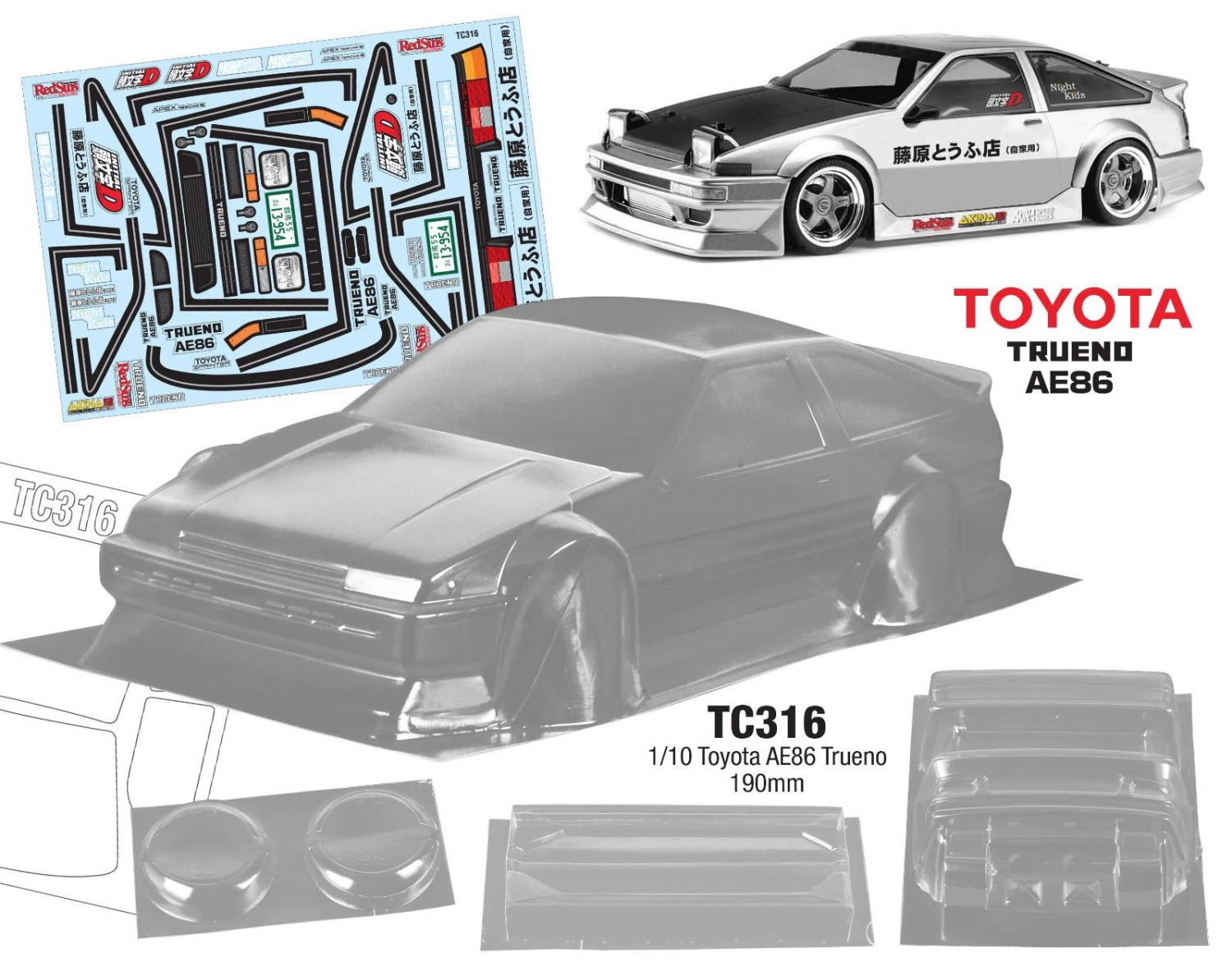 Be the first to review “Toyota AE86 190mm X 257mm Tamiya TT01 TT02 HPI Kyosho” Cancel reply